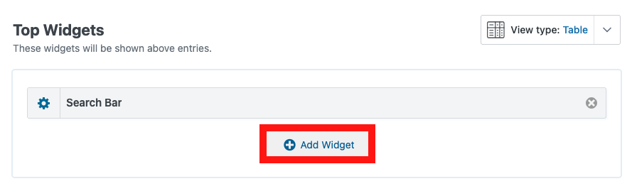 In the Edit View screen, click "Add Widget"