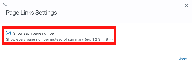 You can choose to show every link by checking the "Show each page number" box.